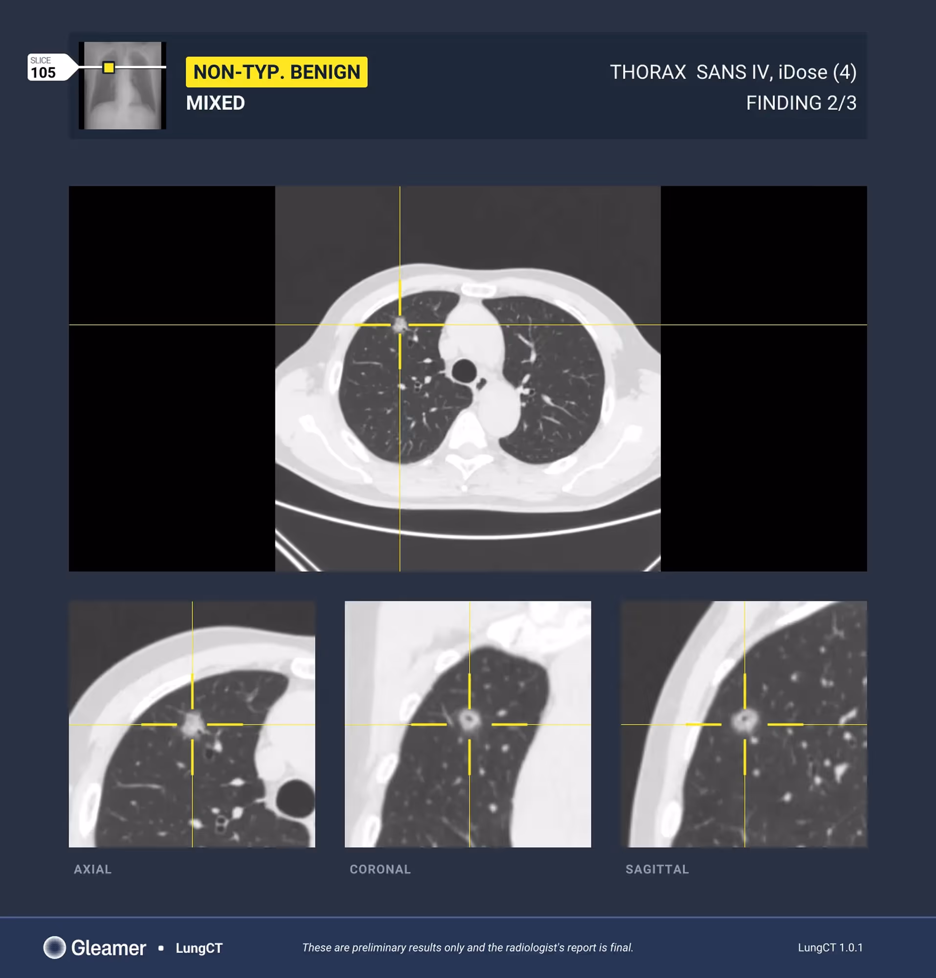 Rates each nodule’s malignancy likelihood: typically benign or non-typically benign.